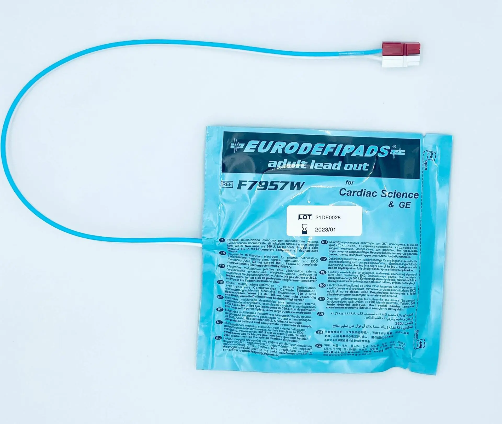 Une électrode de défirillateur est une interface conductrice qui permet de transmettre un choc électrique du dispositif vers le patient en cas d'arrêt cardiaque soudain. Elle joue un rôle crucial dans l'efficacité de la défibrillation. Sans elles, le défibrillateur ne pourrait pas délivrer le choc nécessaire pour tenter de rétablir un rythme cardiaque normal.
