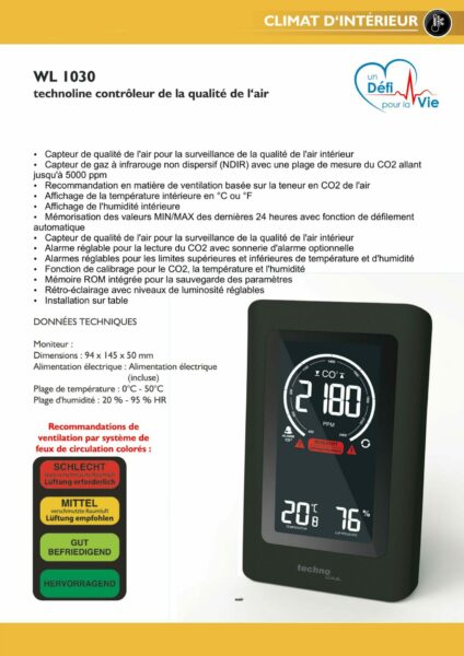 • Recommandation de ventilation sur la base de la concentration de CO2 dans l’air