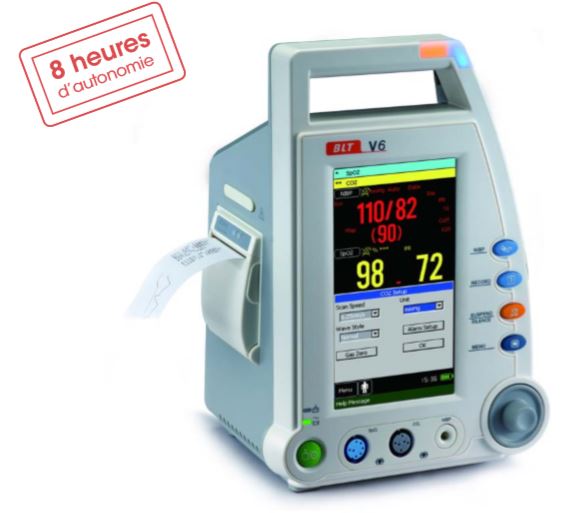 Écran tactile TFT couleur de 6,5 pouces, défibrillation manuelle, mode DSA, cardioversion et stimulation cardiaque.