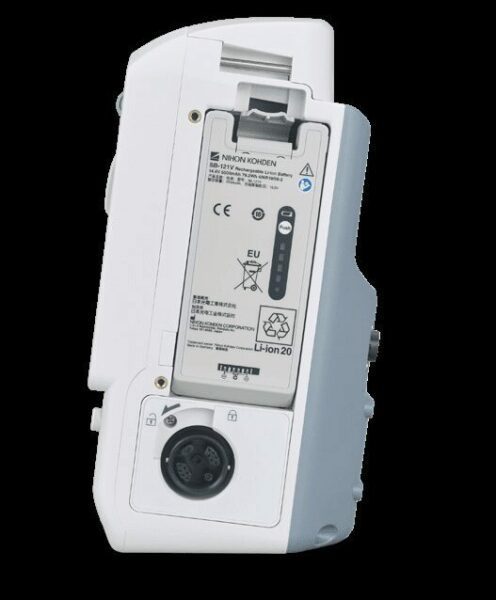 La sacoche de transport avec ses larges poches latérales permettent de ranger tous les accessoires nécessaires à la prise en charge du patient. Dans la partie interne des poches latérales, les connecteurs intelligents de Nihon Kohden détectent automatiquement le câble de mesure qui sont connecté et l’écran tactile de 6,5 pouces affiche immédiatement la courbe ou les valeurs souhaitées.