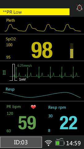 Idéal pour la prise en charge pré-hospitalière et les services de soins légers des établissements de santé, pour la surveillance en continue des paramètres vitaux majeurs, ECG, SpO2, RC, FR d’un patient adulte, pédiatrique ou nouveau-nés.